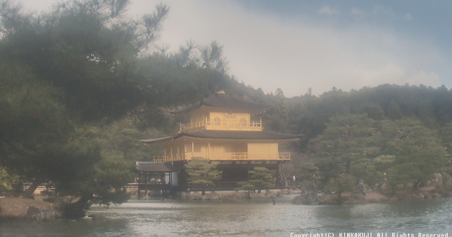 사찰이 자리한 정원과 경호지(鏡湖池)에 반사되는 황금빛 사찰의 모습은 ‘자연과 건축의 완벽한 조화’를 보여주는 대표적인 미적 감각의 표출이다.