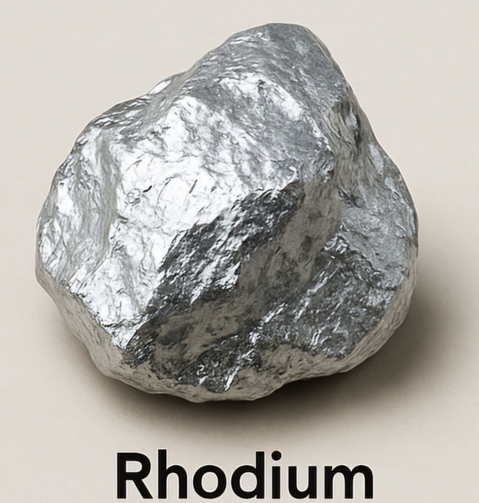 ● 화학적 성분, 성질: 원소기호 Rh, 원자번호 45. 백금족 원소 중에서도 가장 희귀함.