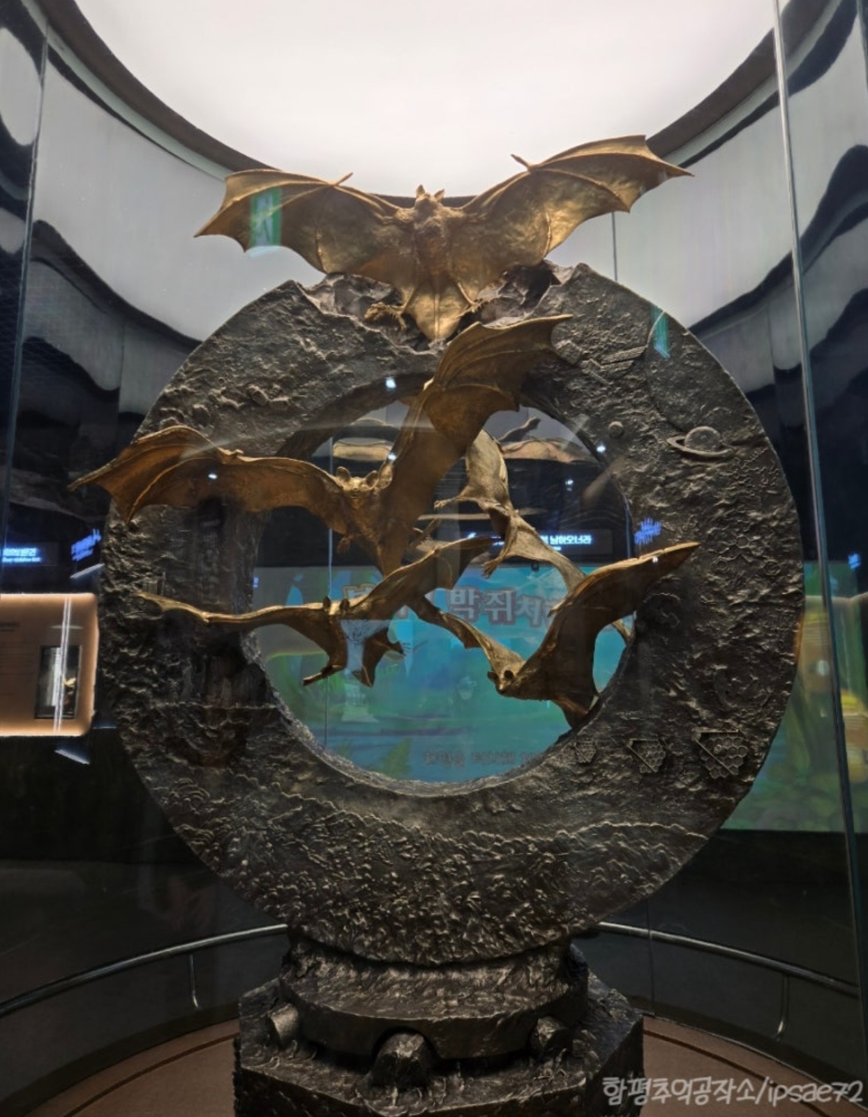 황금박쥐상은 천연기념물이자 멸종위기 1급인 황금박쥐 162마리가 1999년 함평에서 발견되었습니다.